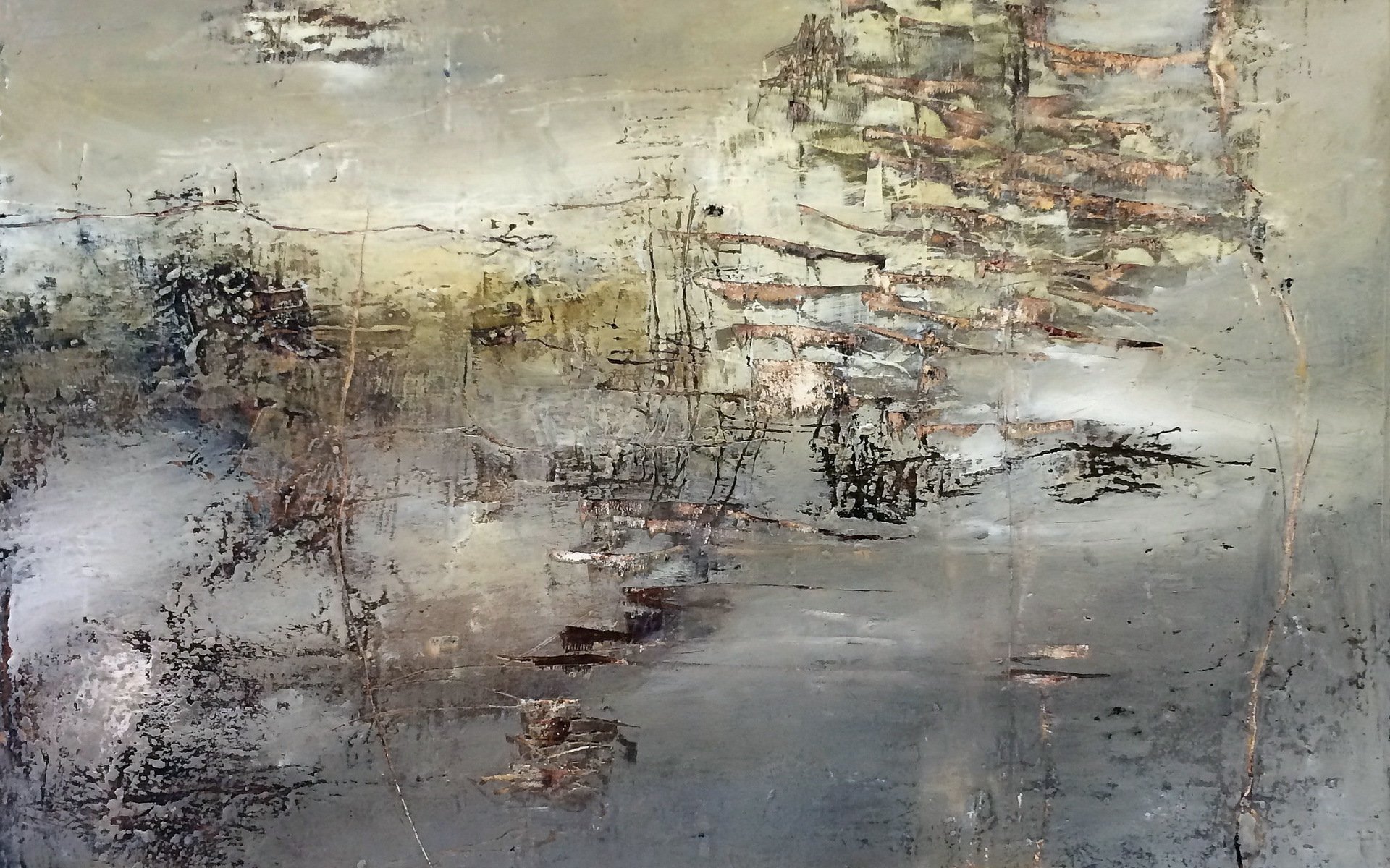Part of the room with a wooden floor made of planks and a wall made of gray brick1920 x 1440, 586 kB