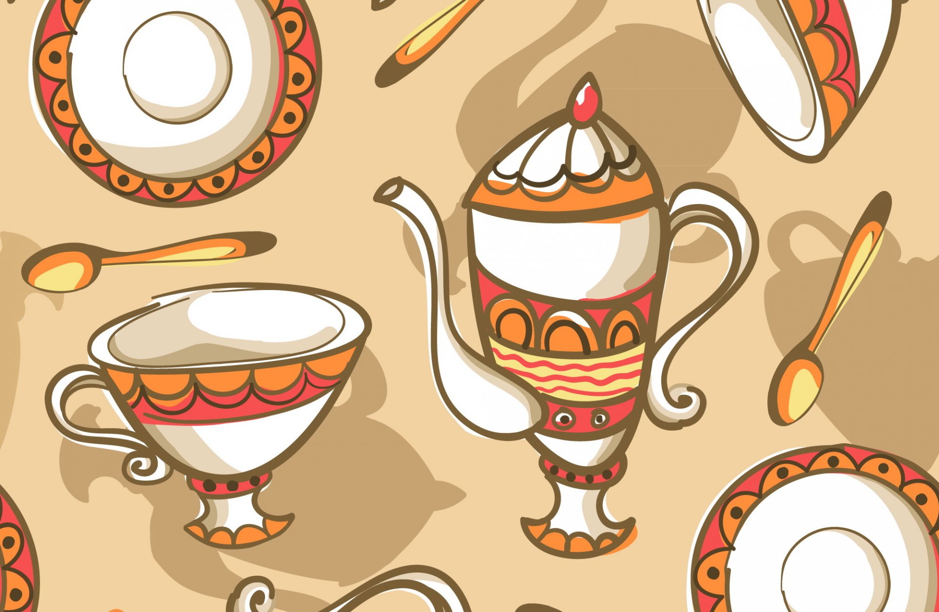 Tea set on beige background