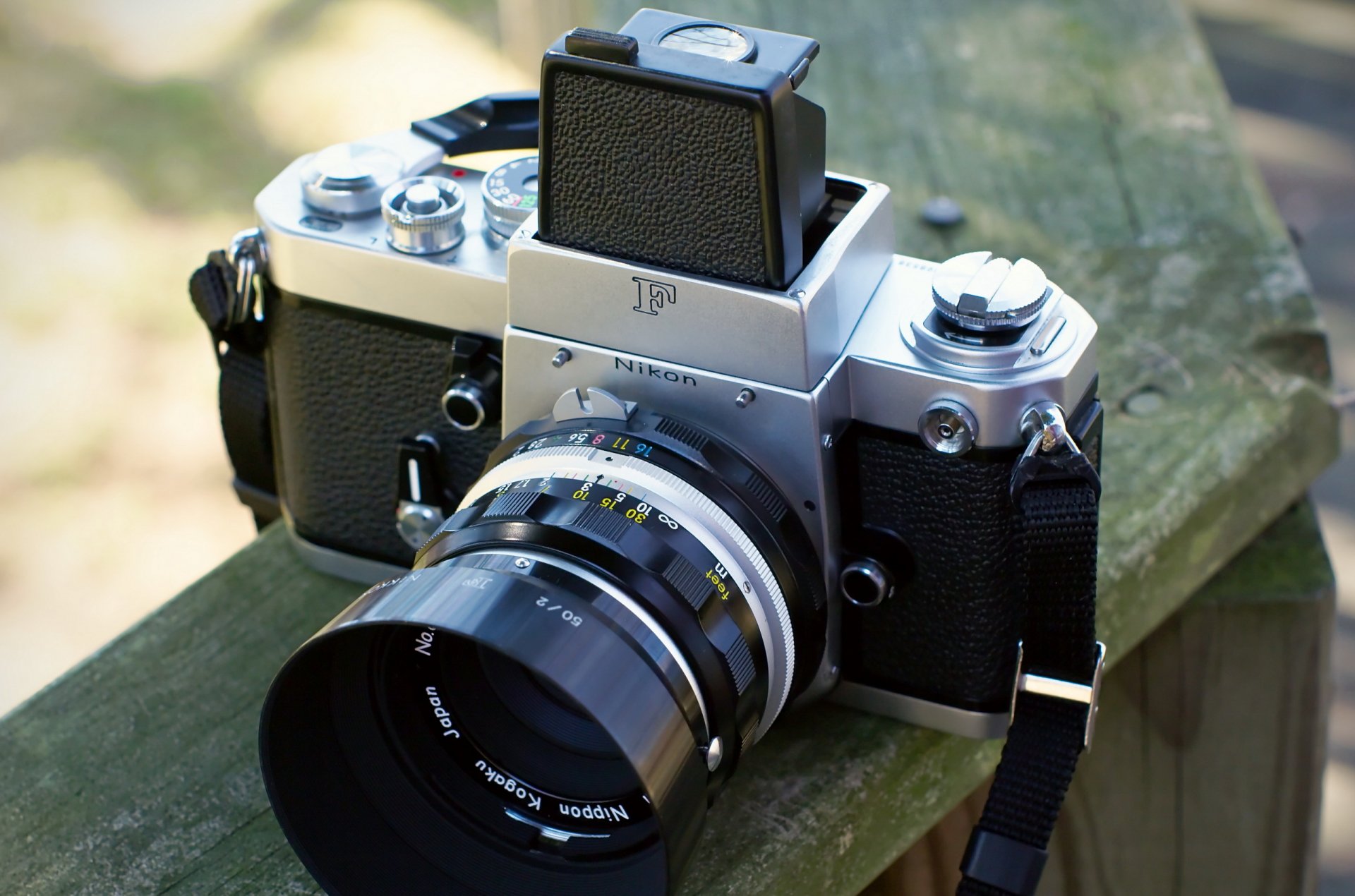 Vintage camera on a wooden bench