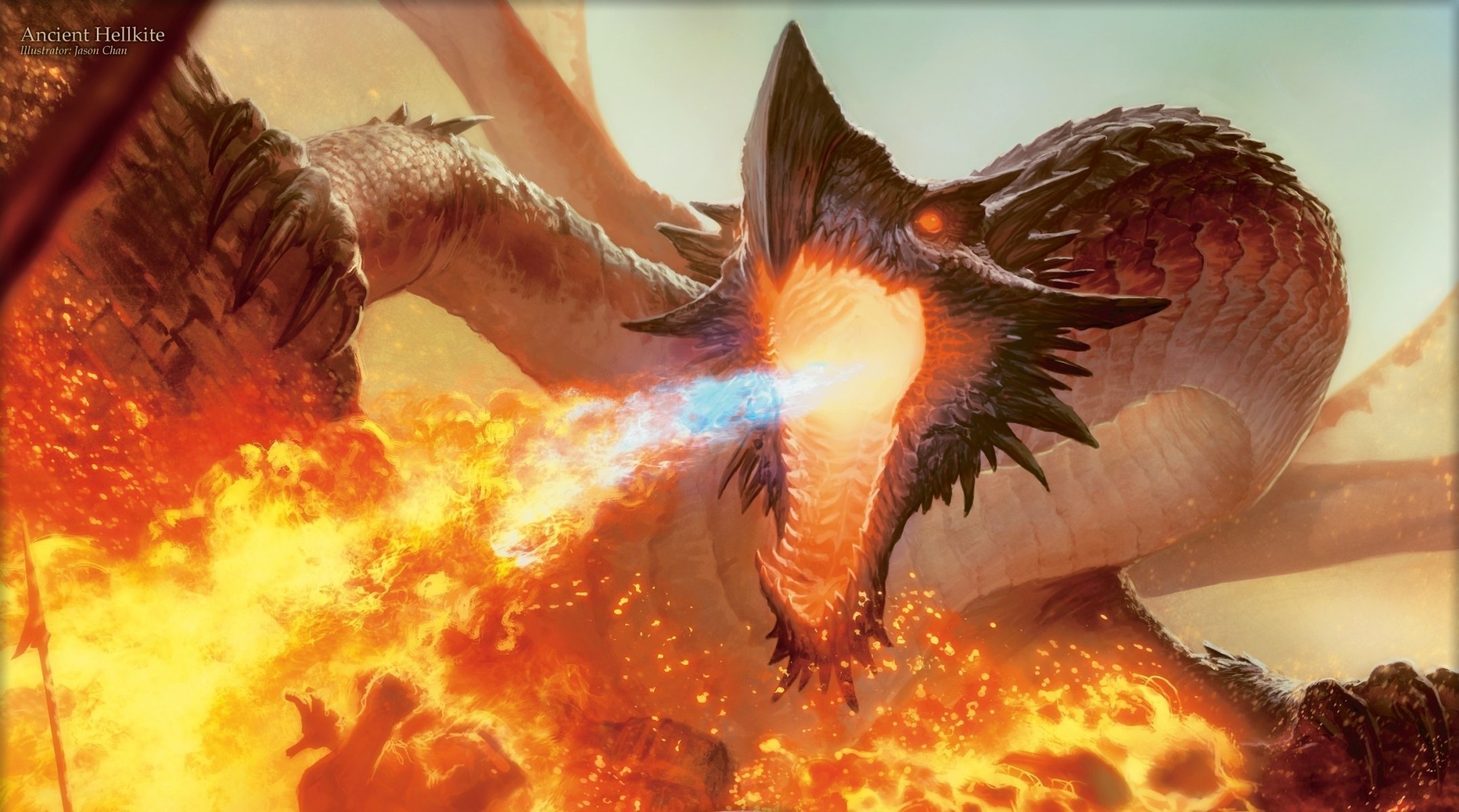 The dragon releases a flame of fire