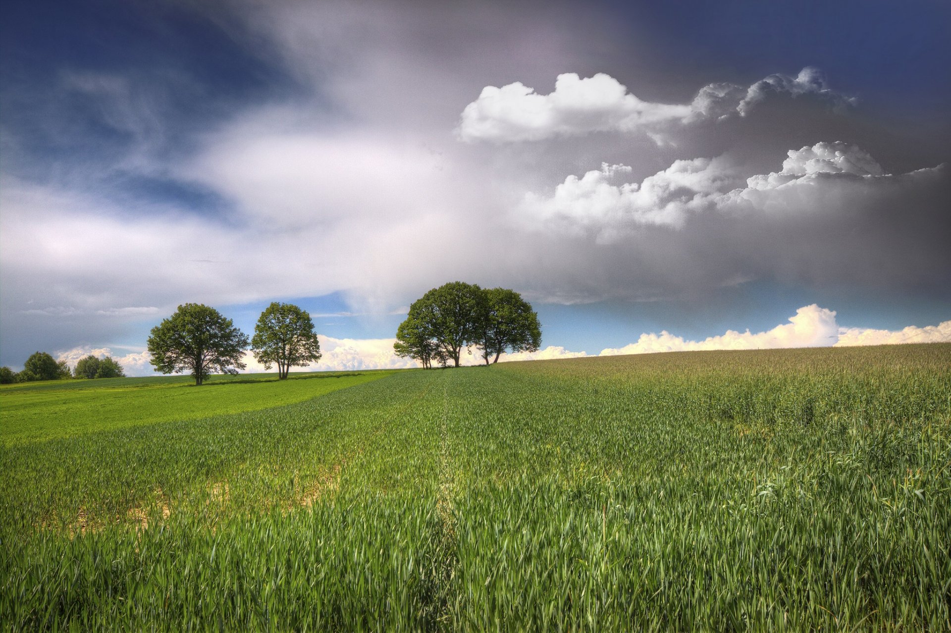 White and gray clouds over green