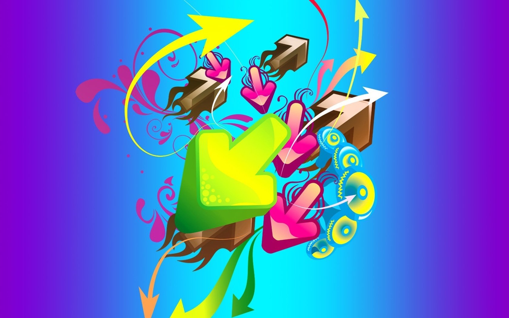 Three-dimensional arrows made of different colors