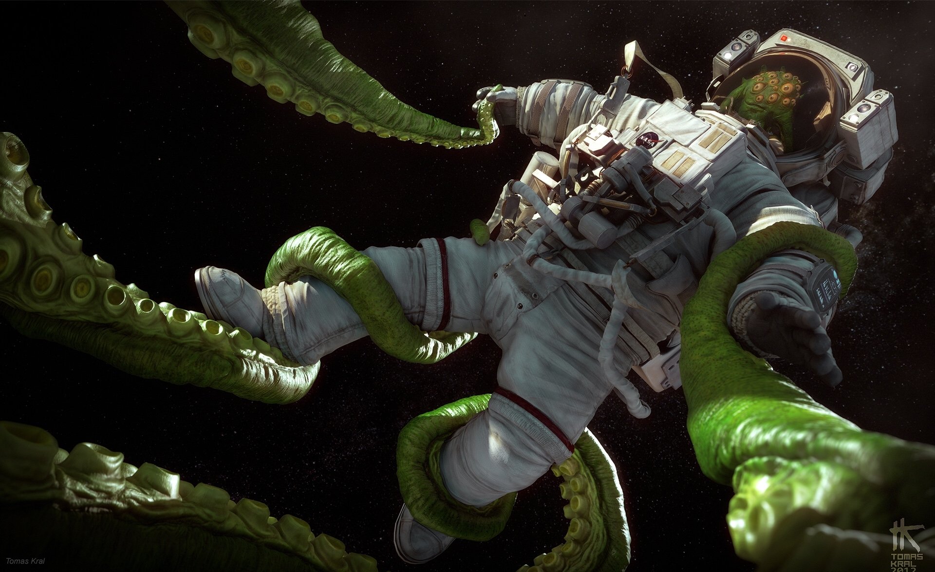 Dangers in space or an astronaut caught by the tentacles of a living being