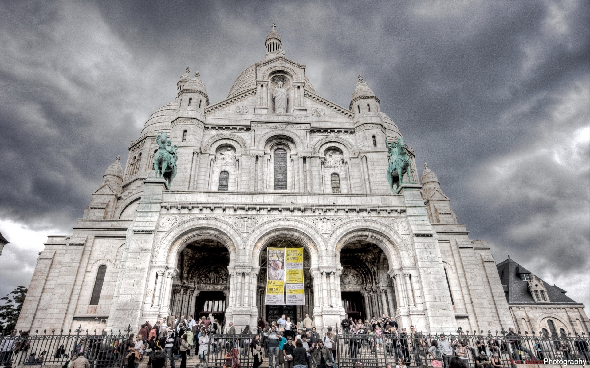 A monumental building under a dark sky