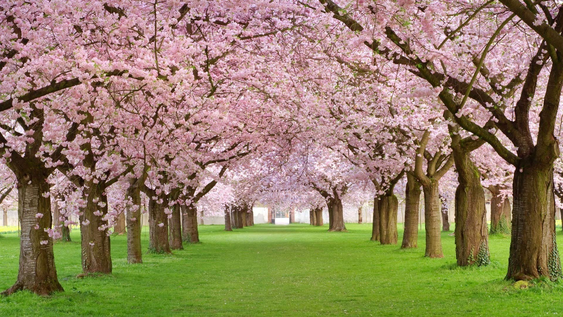The edge of the forest is covered with a tulip carpet.1920 x 1080, 683 kB