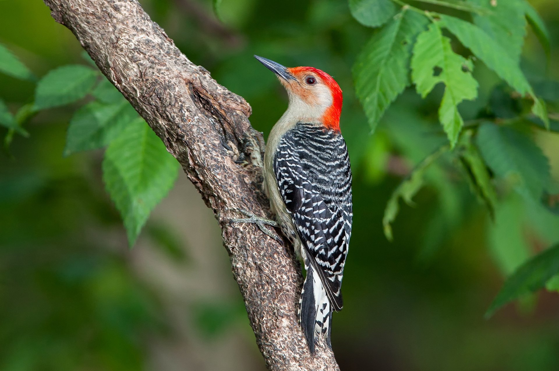 Image tags:undulating woodpecker, poultry, feathers, tail, beak, leaves, tree, trunk, branch