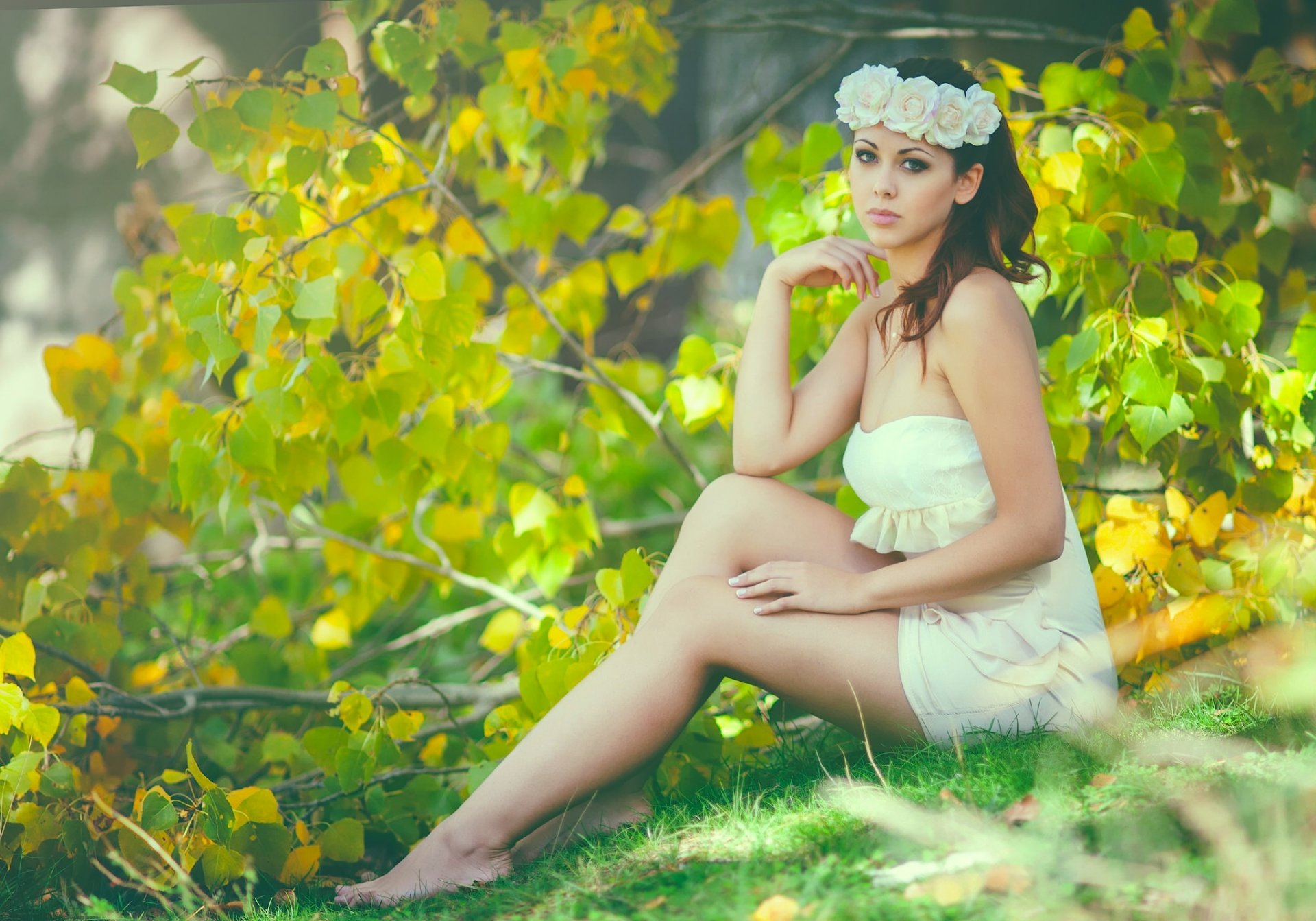 Image tags:vanessa gil, dress, feet, wreath, roses, tree, branches, summer