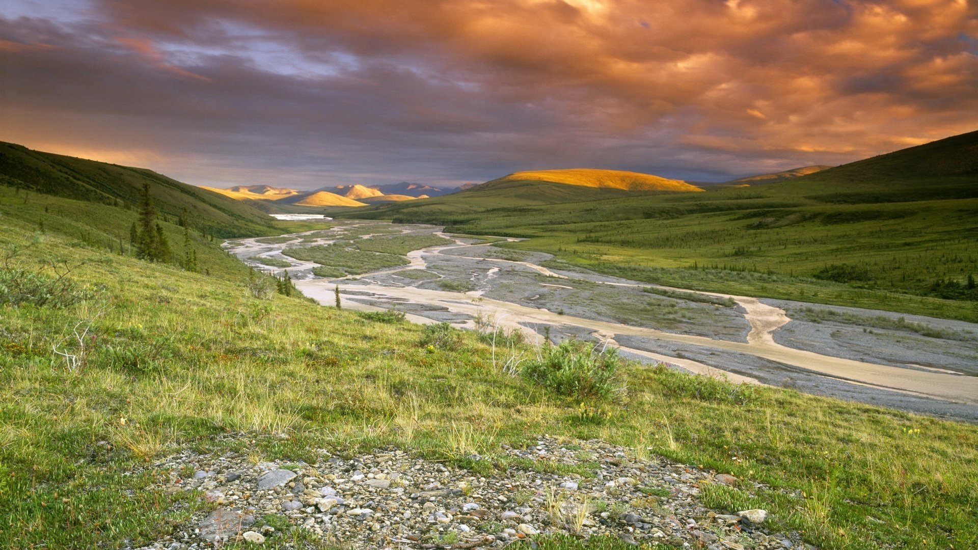 norway summer field grass tree hills green road sky clouds2048 x 1132, 688 kB