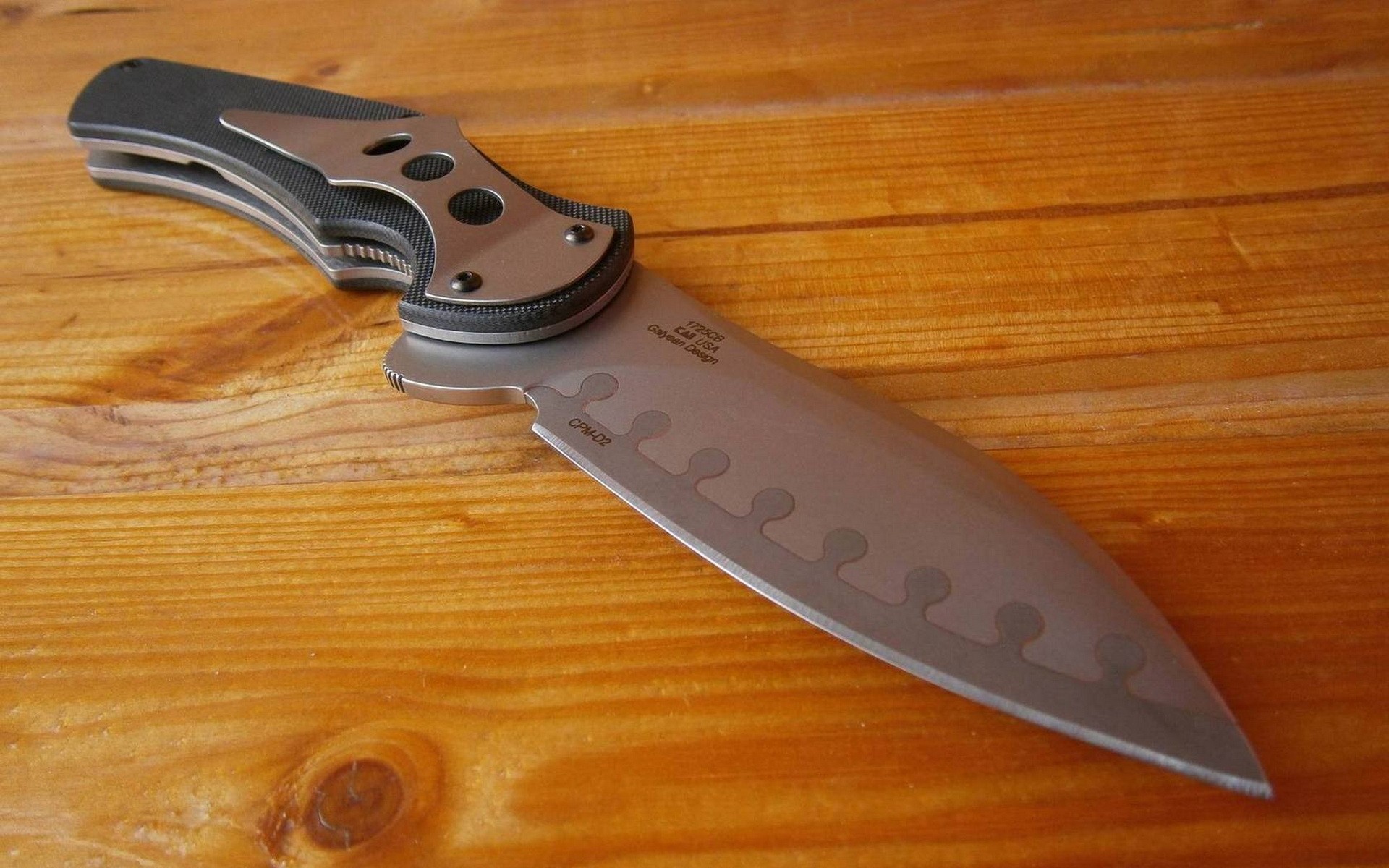 A knife with a brown handle