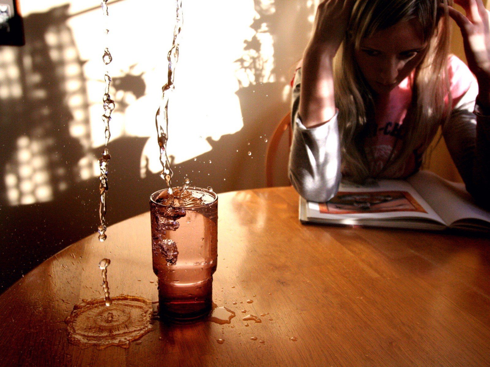 The girl is angry, she got all the water this calmness