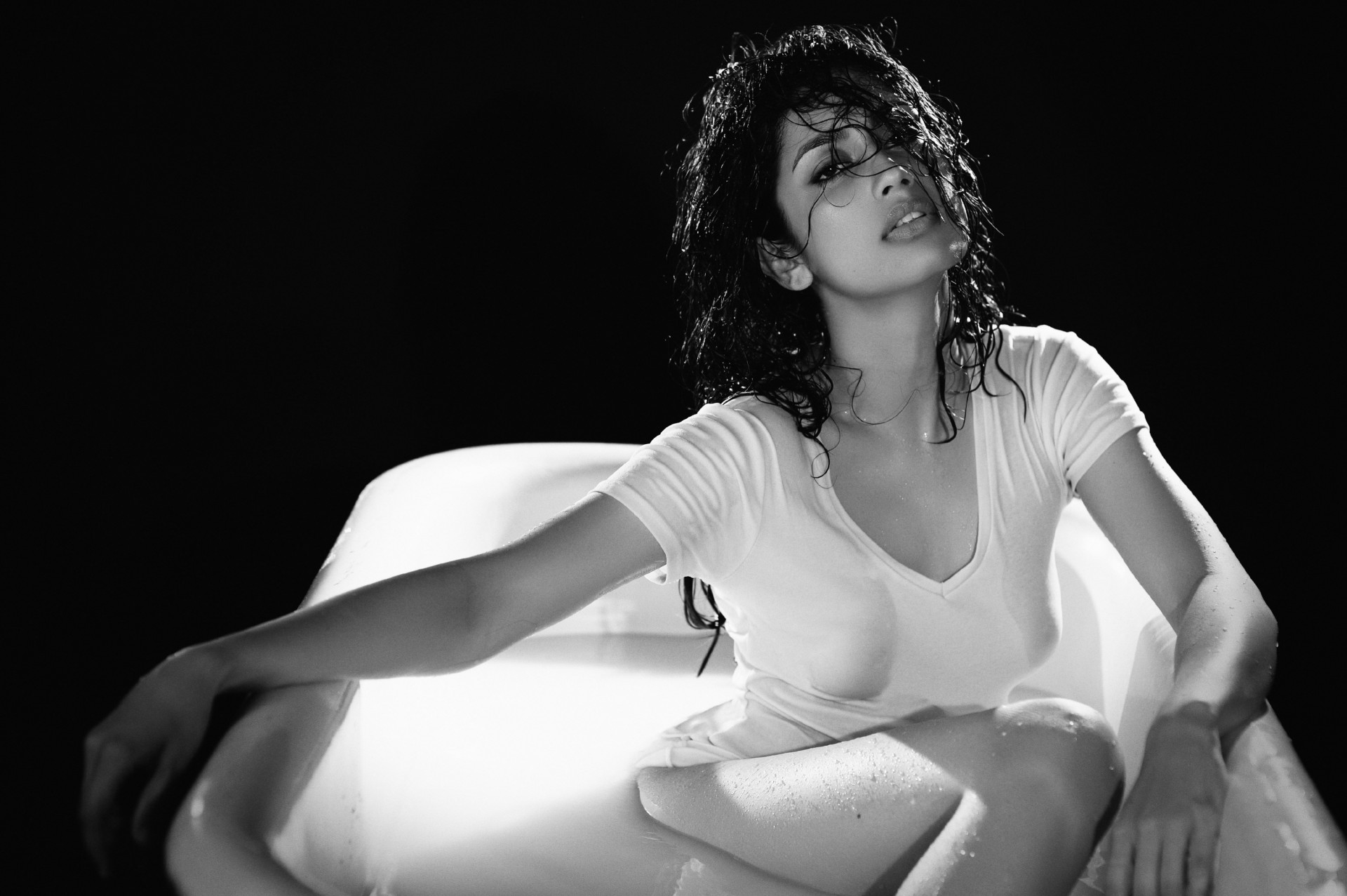 Image tags:water, girl, black and white, brunette, nature, bath, breasts, foam, feet, sexy, hair, wet, views