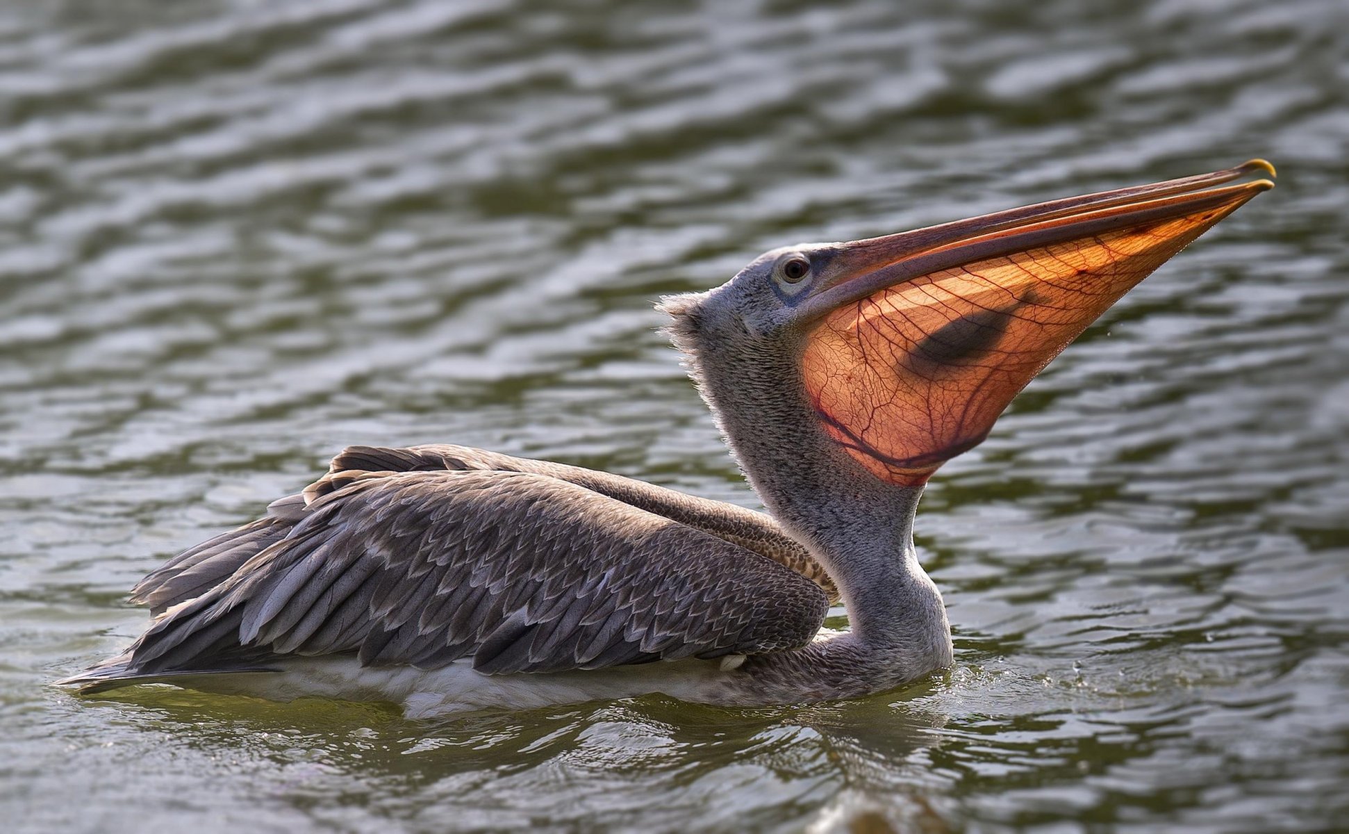 Pelican in the water with a caught fish