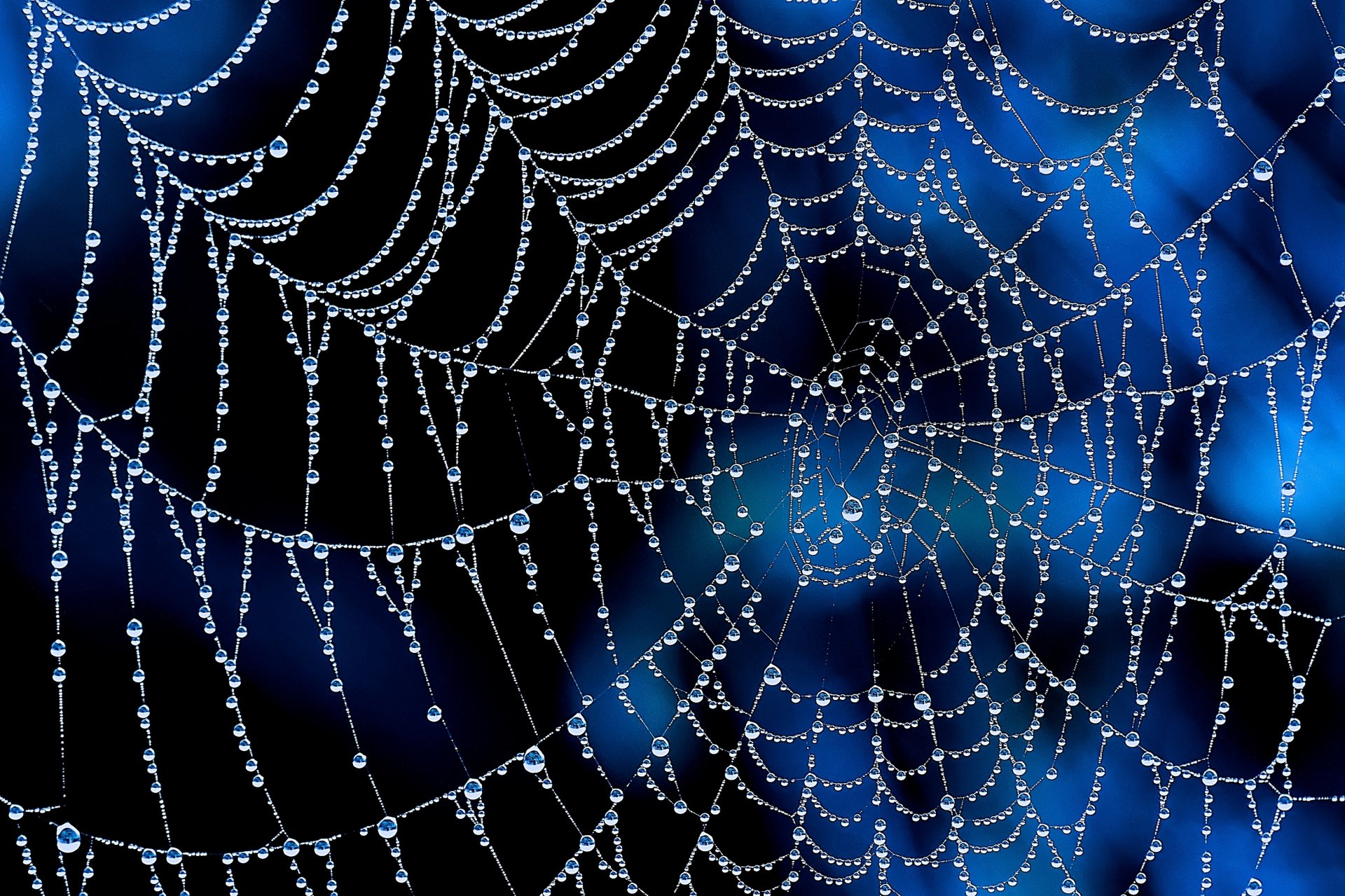 Macro shooting of a web in dew drops