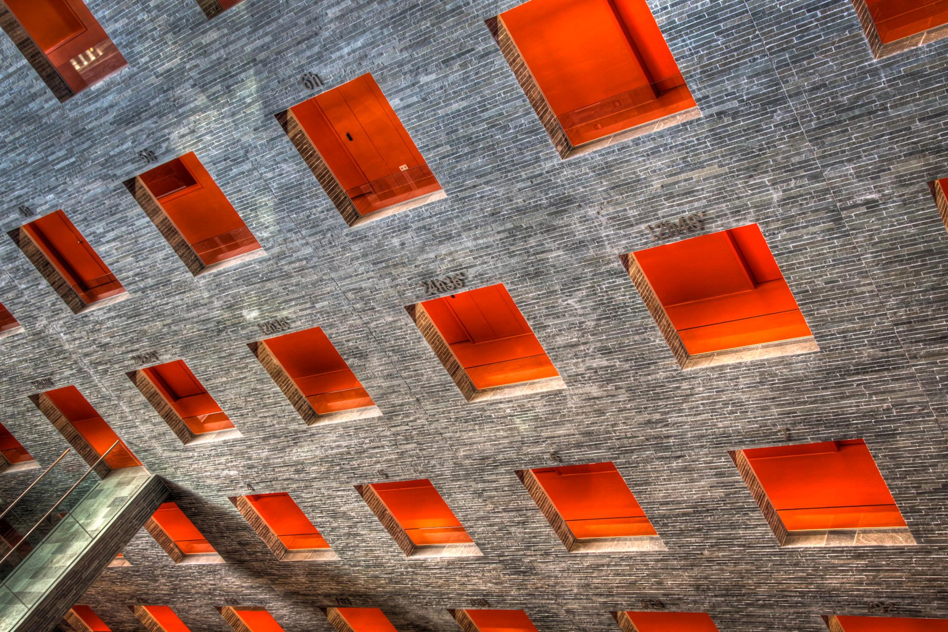 Part of the room with a wooden floor made of planks and a wall made of gray brick1920 x 1440, 586 kB