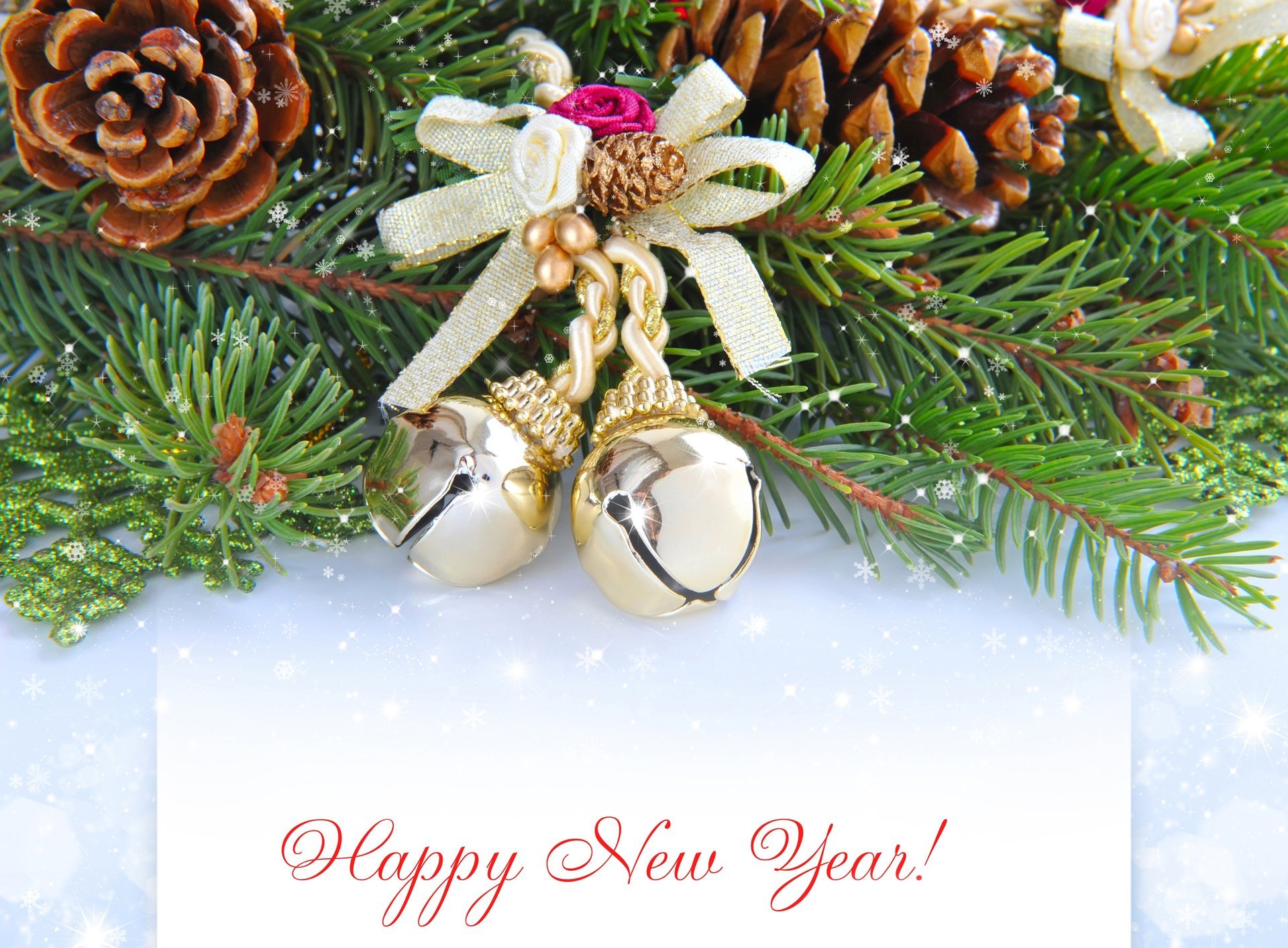 Wishing a happy new year on the background of the Christmas tree