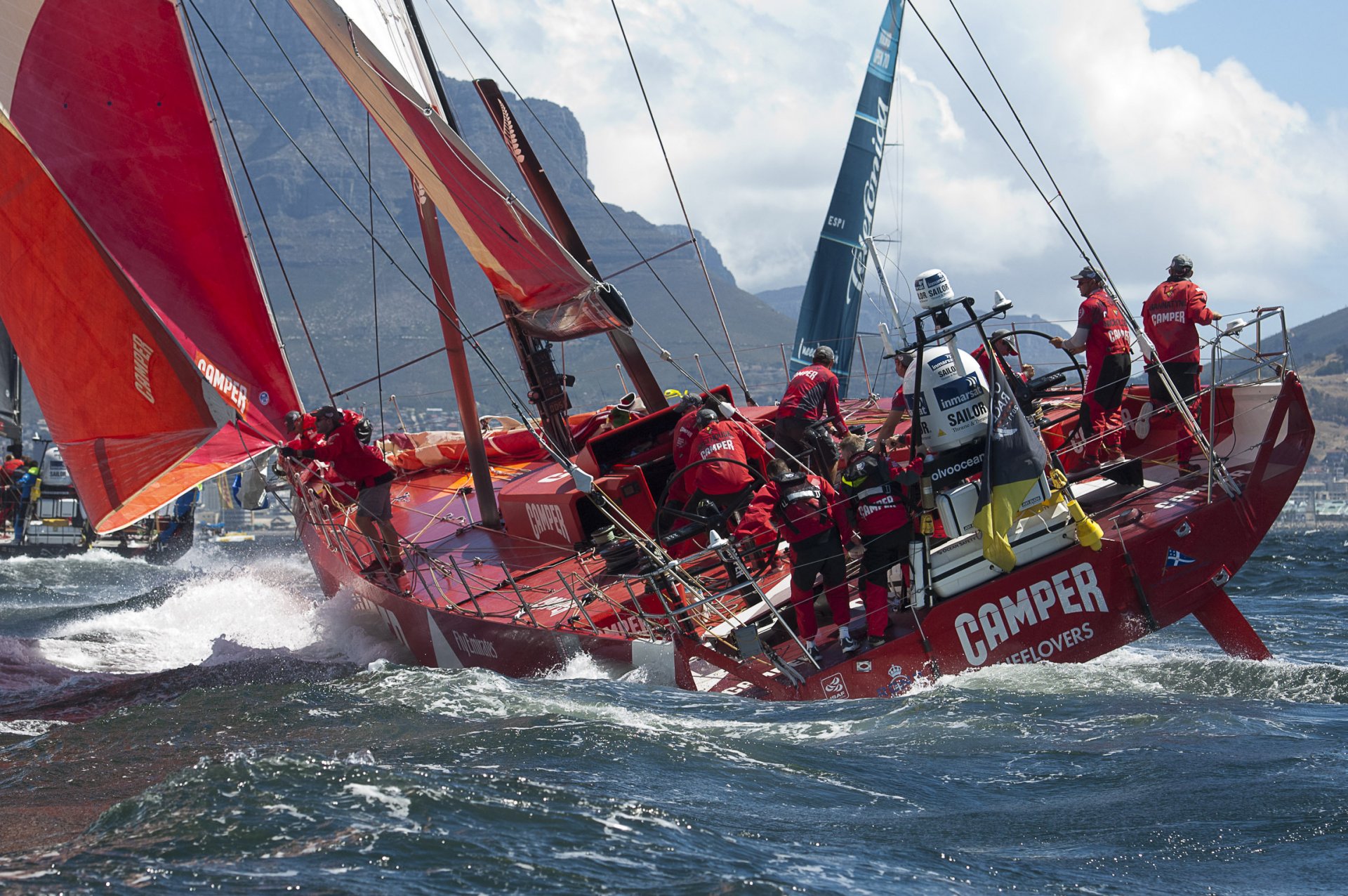 People on a yacht are sailing in the ocean