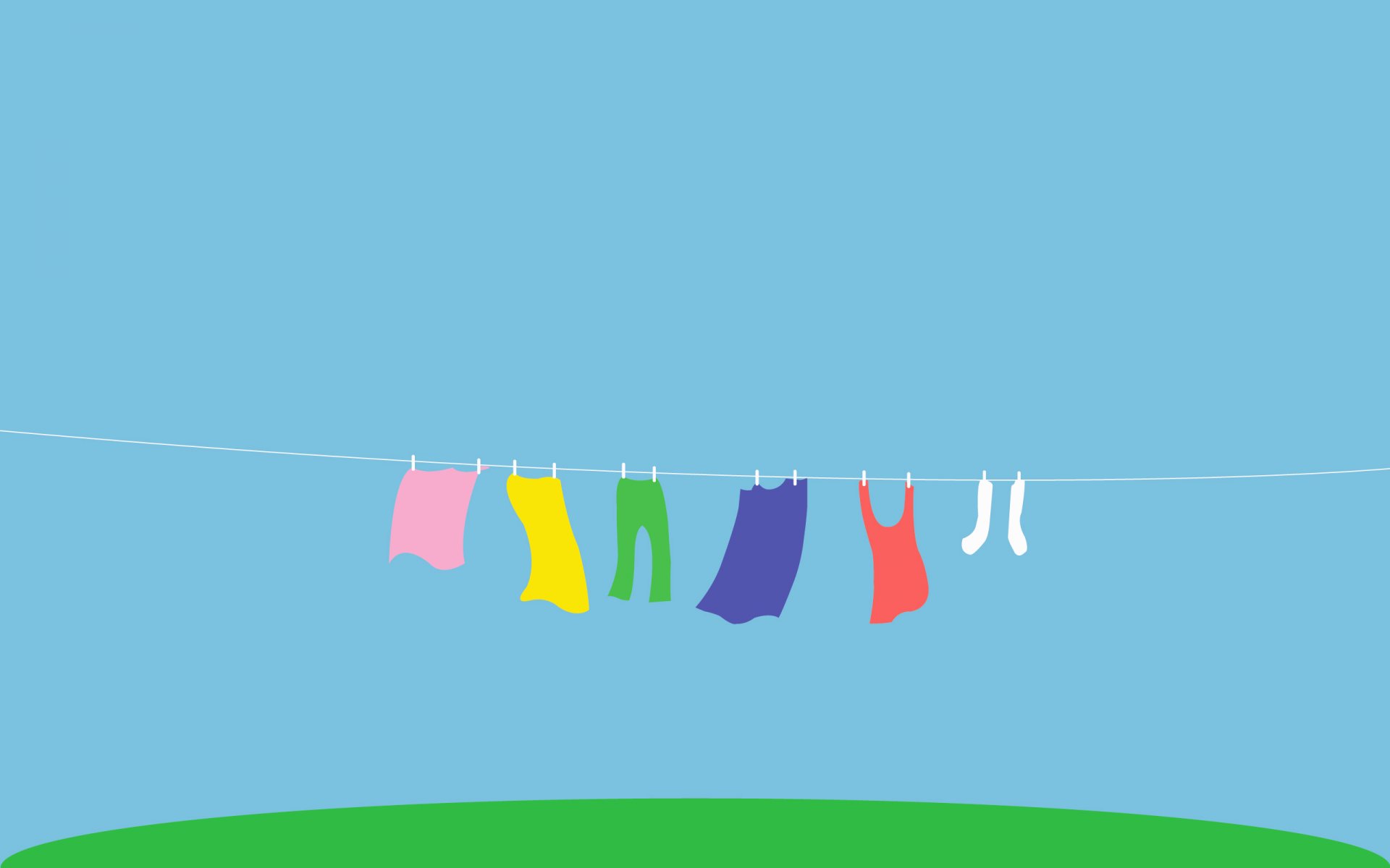 Image tags:yard, grass, rope, underwear, laundry, drying, jersey, pants, socks, flowers, rainbow