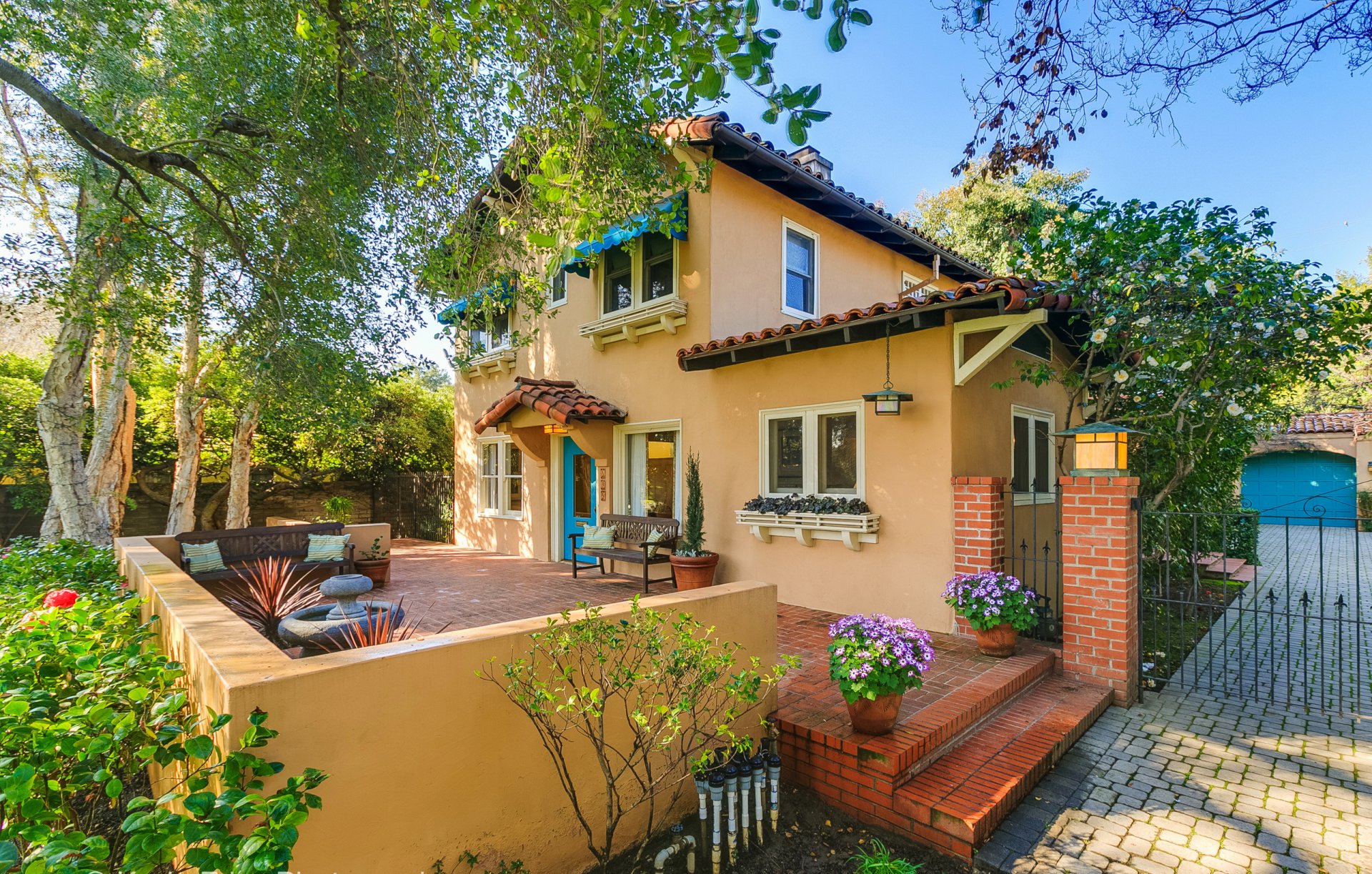 A nice house with a garden and flowers cheerful photo